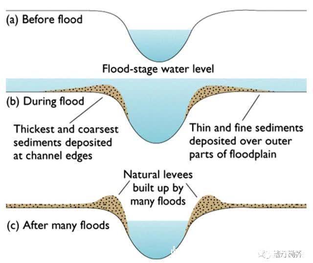 天然堤(natural levee)的形成(图裕┤侵耷霸滴破皆窍啾咴瞪煜蚝Q螅驶反植肌37⒂路至骱拥馈⑺路至骷渫濉⒑涌谏鞍拥任⑾唷?/p>