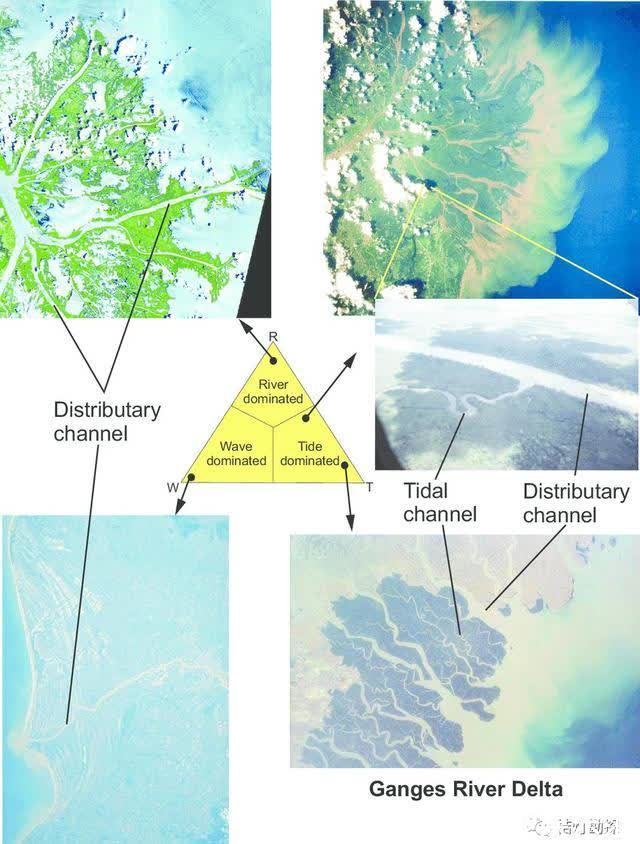 尼罗河三角洲(图源@TDC)三角洲是在河流和聚水盆地的共同作用下形成的一种地质体,根据主导的河口动力学因素可将其分为河控、潮控和浪控三大类。